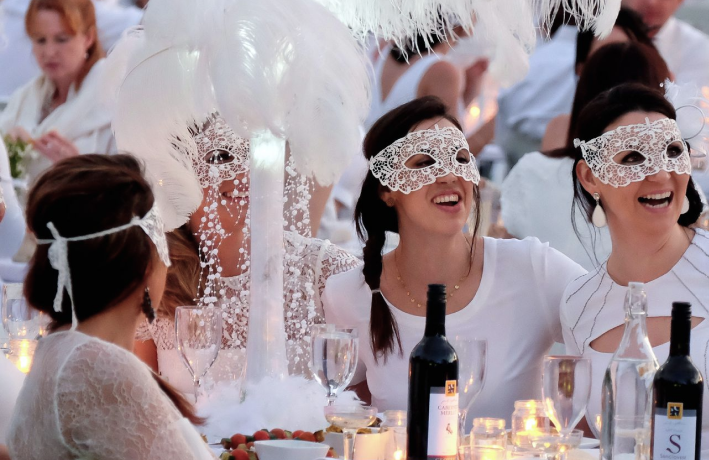 Once the scene is set, guests wave their white cloth napkins in the air, in unison, to signal that Le Diner is about to commence.
